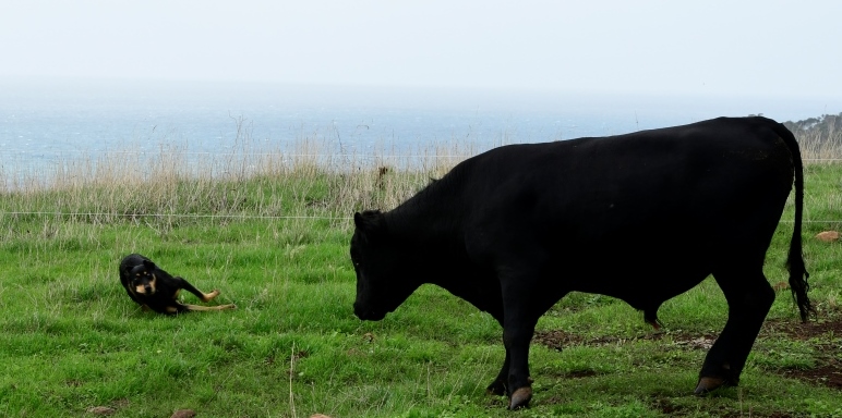 It is the simple things in life that lift the heart. Our rather fat Dorper sheep seem to be adored by all, children and grown-ups alike. We were attracted to them because they do not require shearing, crutching or muelsing and they do not get flystrike. The sheep often look rather scraggly as they shed naturally in the spring and early summer. It is time now to remove Karl from the flock so that lambs are not born on cold wet winter nights. The cattle are enjoying the task of devouring the grass in the paddocks close to the house and cottages as a fire preventive measure. This will also provide Karl with a nice clean paddock.