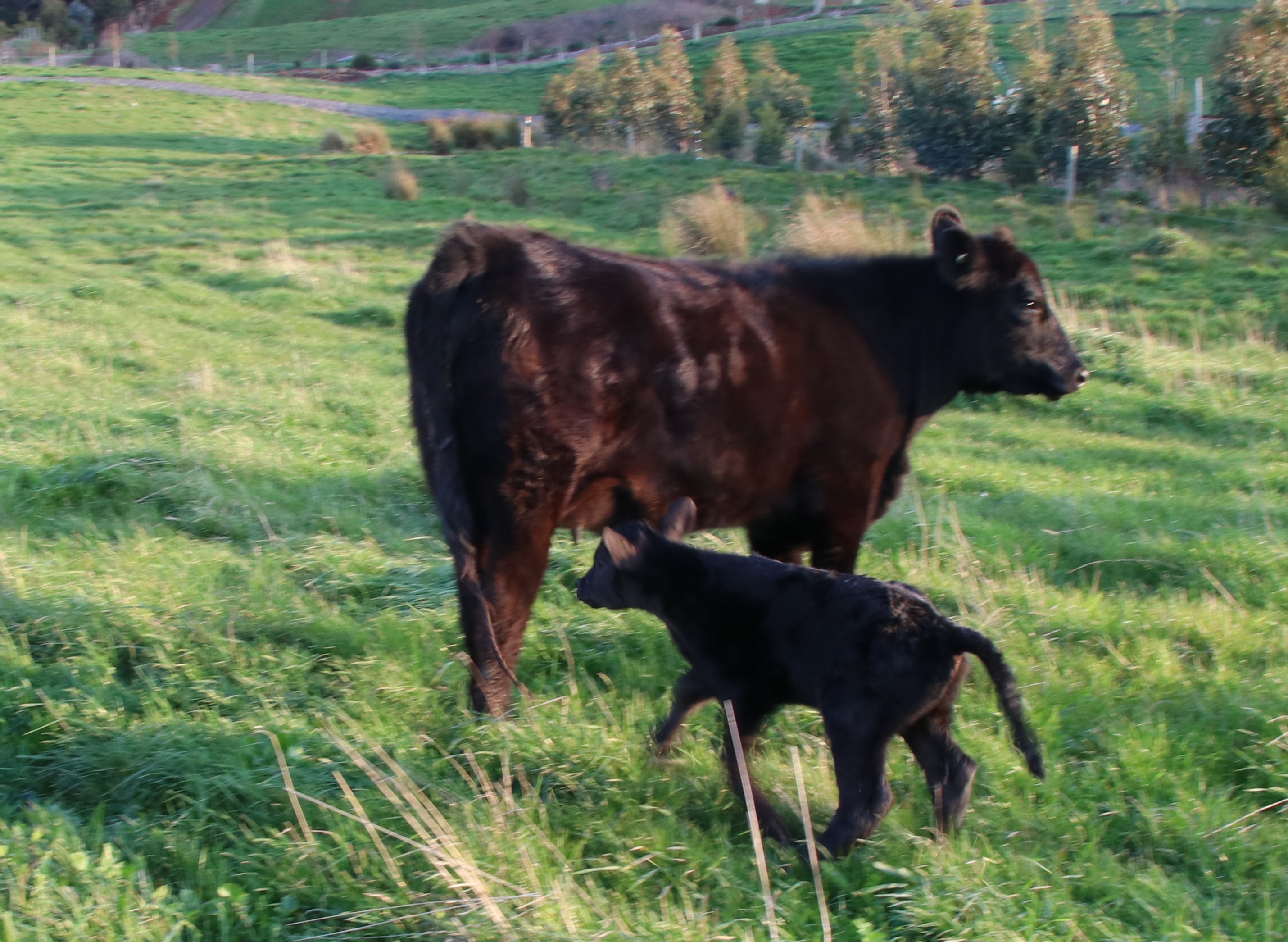 We are currently checking our heifers and cows carefully each morning and afternoon as they are calving. This is an exciting time but like all births, it is a time that can be hazardous for both cow and calf. The cows have been pastured on our hillier country over winter to keep them fit and not too fat . A couple of weeks ago, we mustered them to be nearer the house to closely observe them and so that if they need assistance from us or the vet, we can easily put them in the cattle yards for handling.